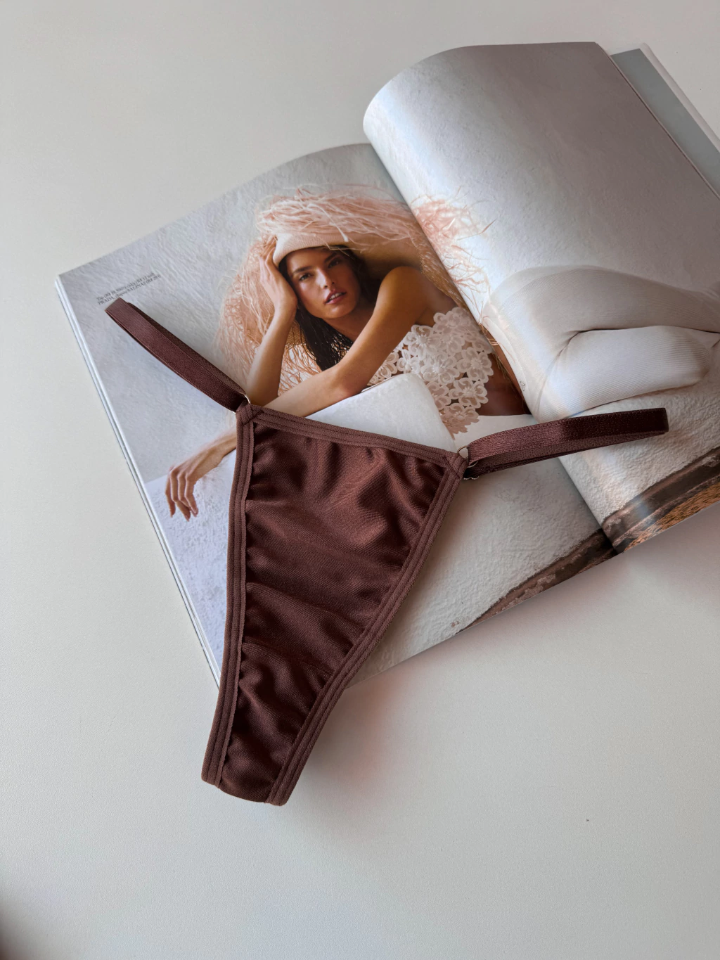 Realce o charme do dia a dia com o conjunto Celine! Feito em lycra com elastano e um leve brilho, este modelo é perfeito para unir conforto e sofisticação. O sutiã sem bojo, com aro, possui recortes delicados em renda, alças ajustáveis com reguladores em metal prata e fecho duplo, além de um pingente costurado à mão banhado a ouro, que dá um toque exclusivo à peça. A calcinha string fio duplo conta com alças reguláveis e fundo 100% algodão, garantindo conforto absoluto.